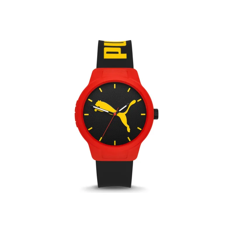 PUMA Мужские часы Кварцевый механизм Резиновый ремешок 43 мм Черный циферблат