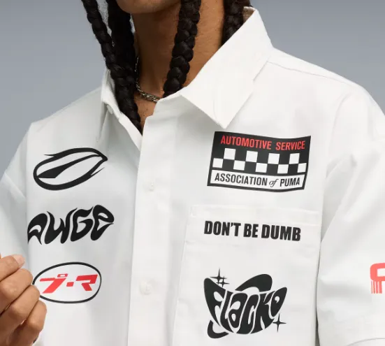 Puma x A$AP ROCKY совместная модель FW25 Отделение Pit Crew Пуговица Пуховые куртки Рубашка Мужской