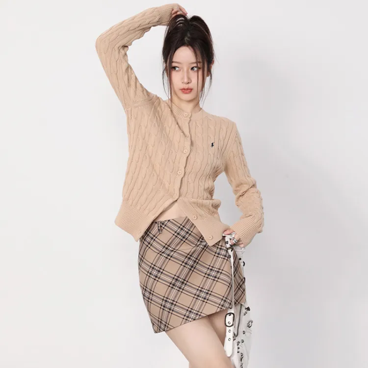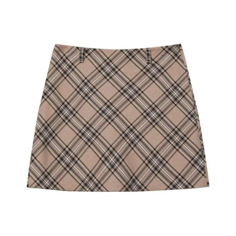 PUNCHUN Studio Повседневные короткие юбки Женские Винтажный желтый Клетчатый