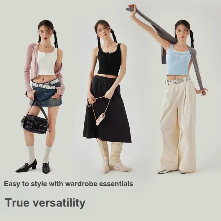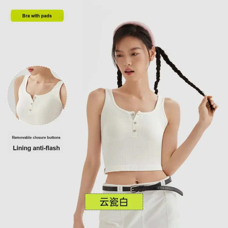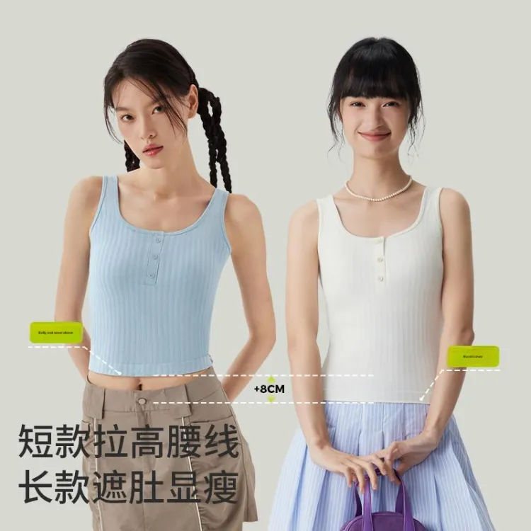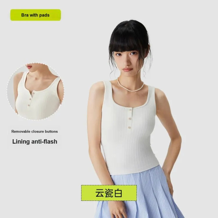 [Укороченный стиль с высокой талией] Майка с кнопками - Белый