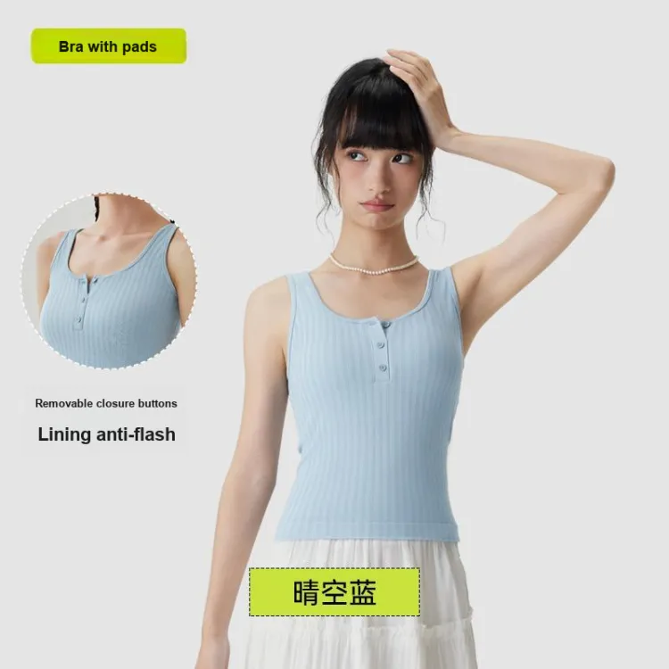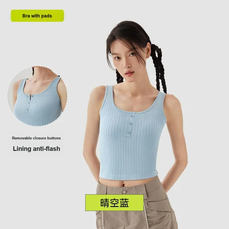 [Укороченный стиль с высокой талией] Майка с кнопками - небесно-голубой