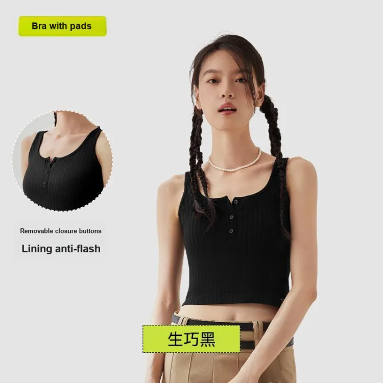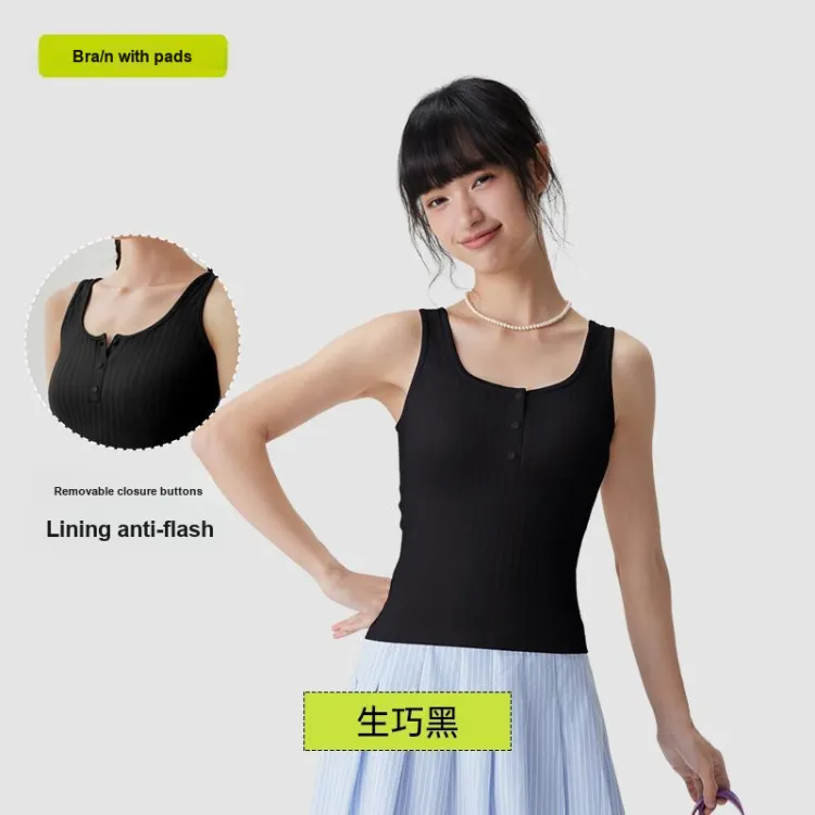 [Высокая талия, стиль позиционирования, похудение] Майка с кнопками - черная