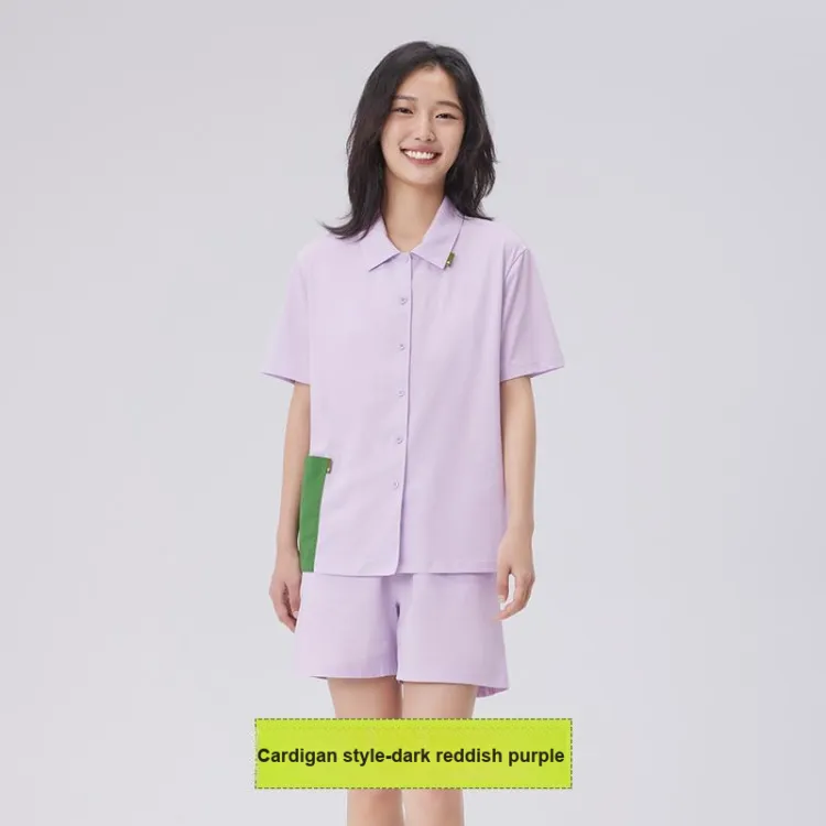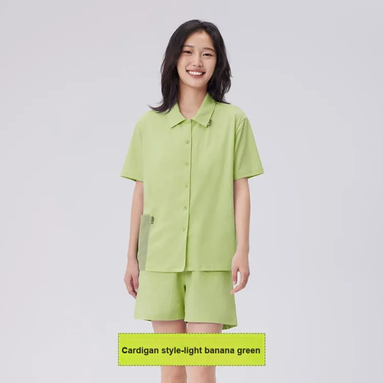 PUNLIEN Пижамный комплект Кардиган Стиль Летний Женский