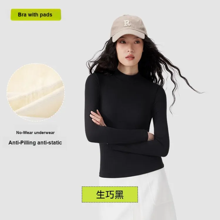 [Встроенный Рекомендуемый бюстгальтер с чашкой, воротником-стойкой] Черный