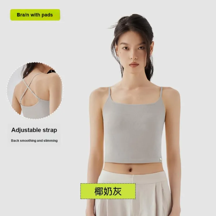 [Высокий-Обхват талии-Покажи свой живот] Регулируемый топ на бретелях - Серый