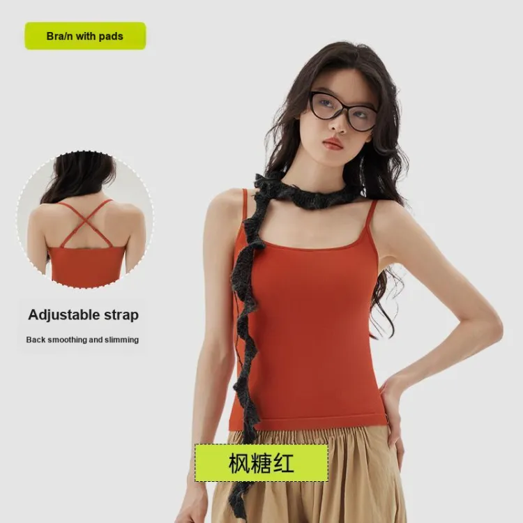 [Охват бедер-Длина (размер в длину)-Покрытие живота-Уменьшение веса] Регулируемый топ на бретелях - Красный