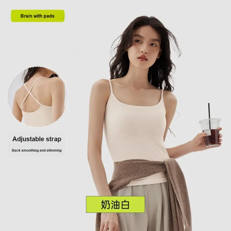 [Бедра-Фит-Увеличение] Регулируемый топ на бретелях - Кремово-белый
