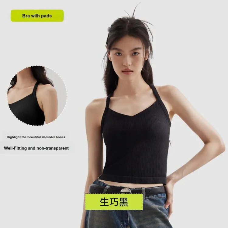 [Фиксированный Рекомендуемый бюстгальтер-Машинная стирка Safe] Халтер Гладкая спина-Черный