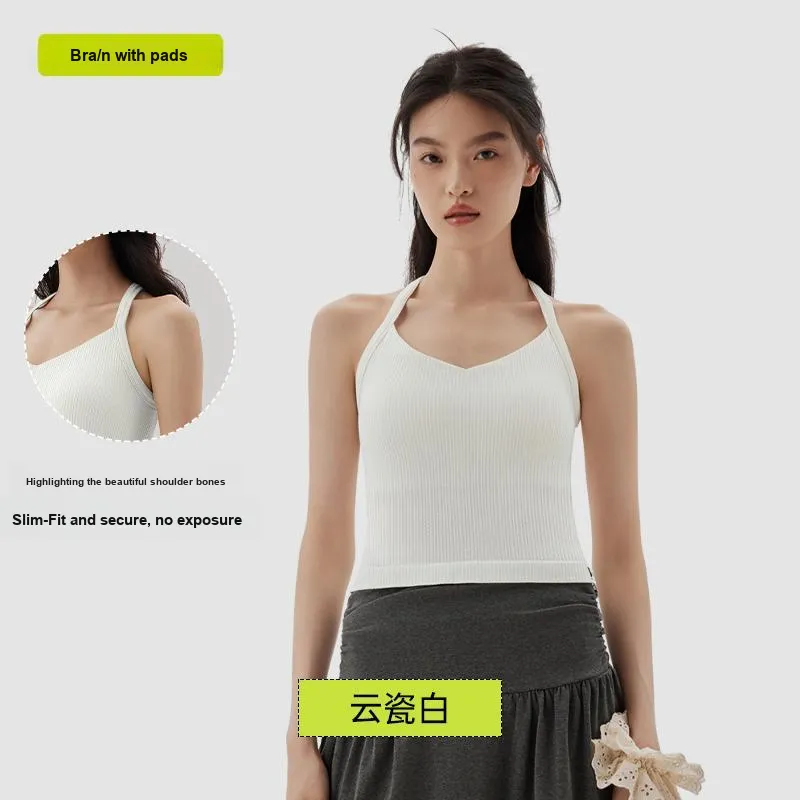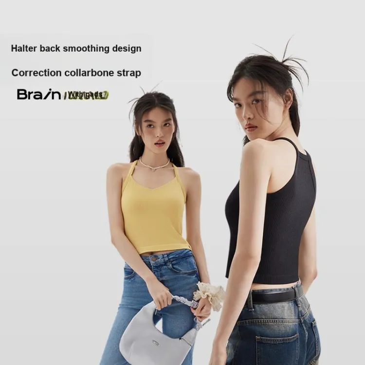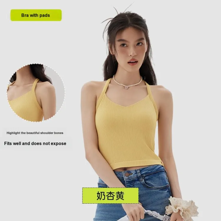 [Фиксированный Рекомендуемый бюстгальтер-Машинная стирка Safe] Халтер Гладкая спина-Абрикосовый Желтый