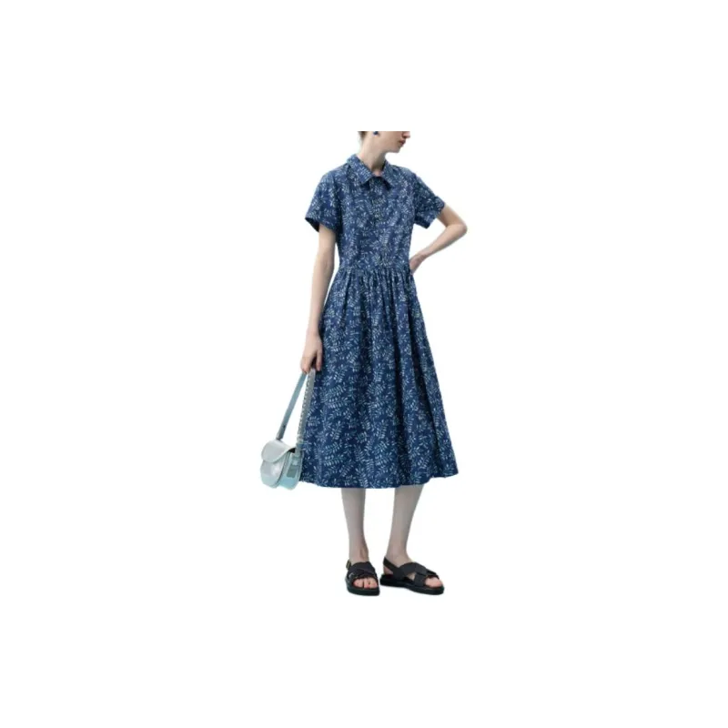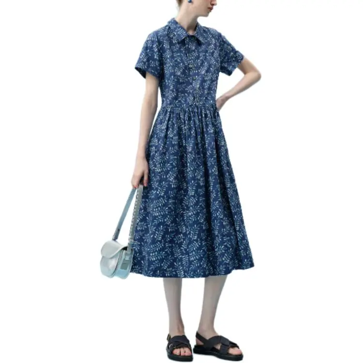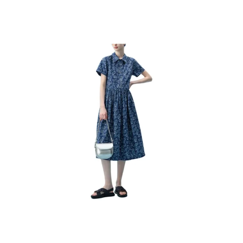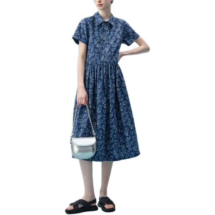 PURE TEA SS24 Короткое платье с короткими рукавами женское озерно-голубого цвета