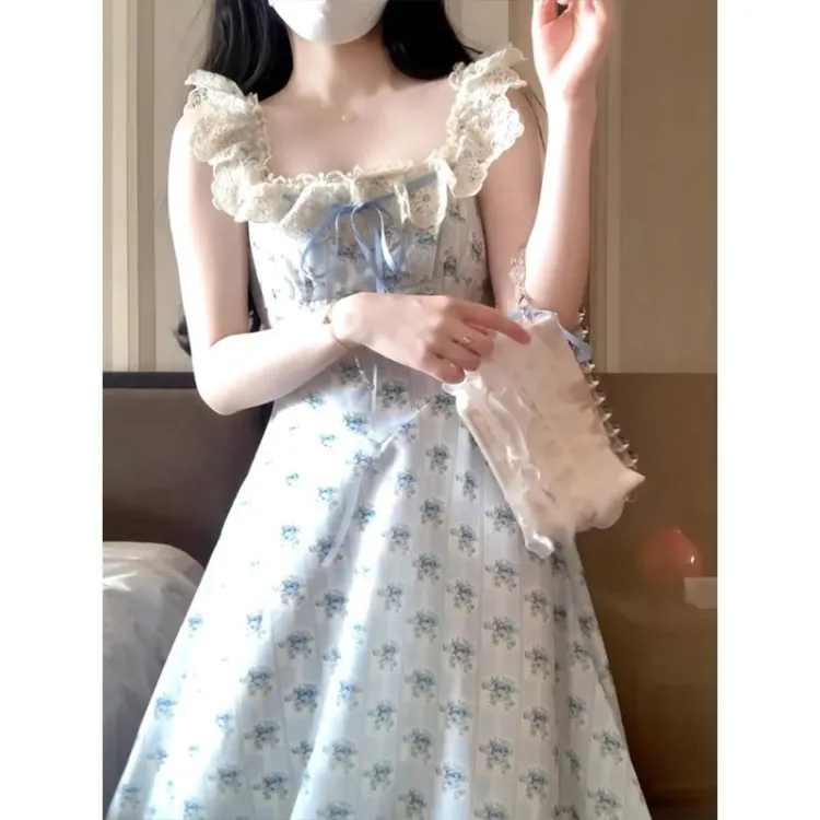 PUREIDOL Короткий рукав Платье Женское Синее