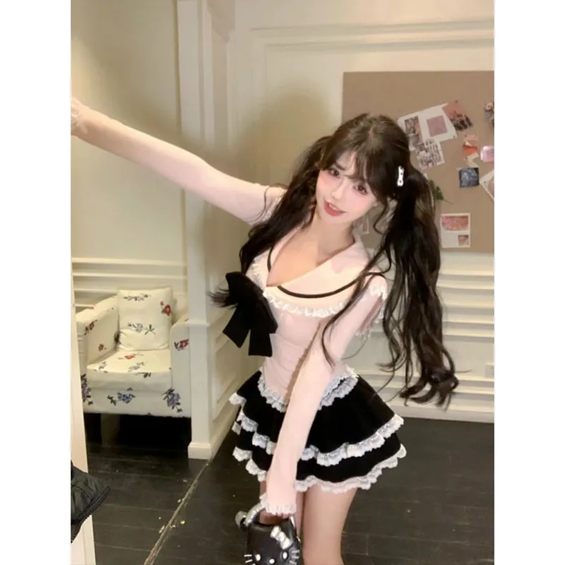 Комплект из двух частей [Топ + Короткая юбка]