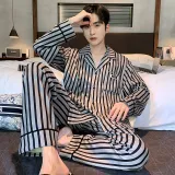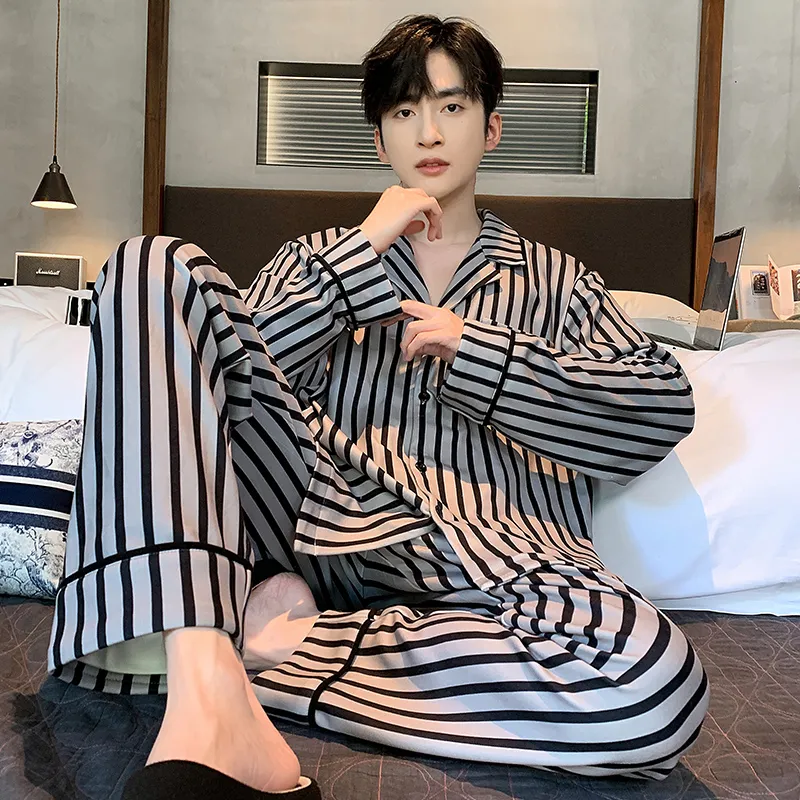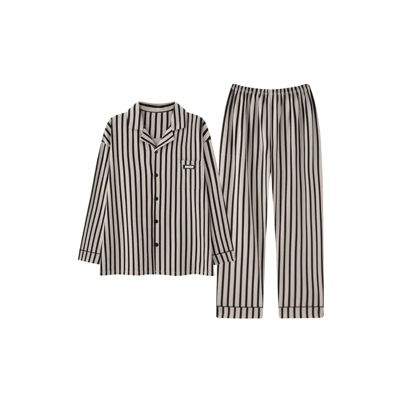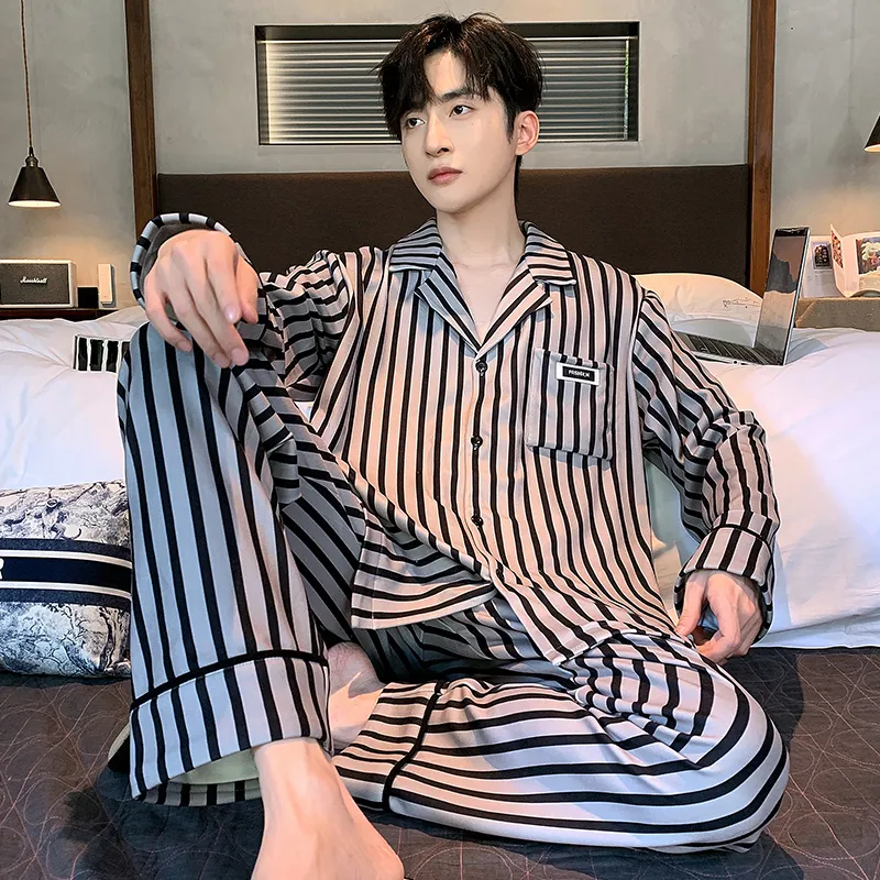 Purple Thousand Длинный рукав Комплект Полосы Минималистский стиль Верхняя одежда Пижама Готовая Мужская