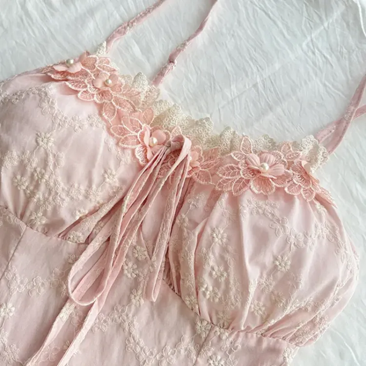Платье-комбинация "Вишневый цветок" розового цвета
