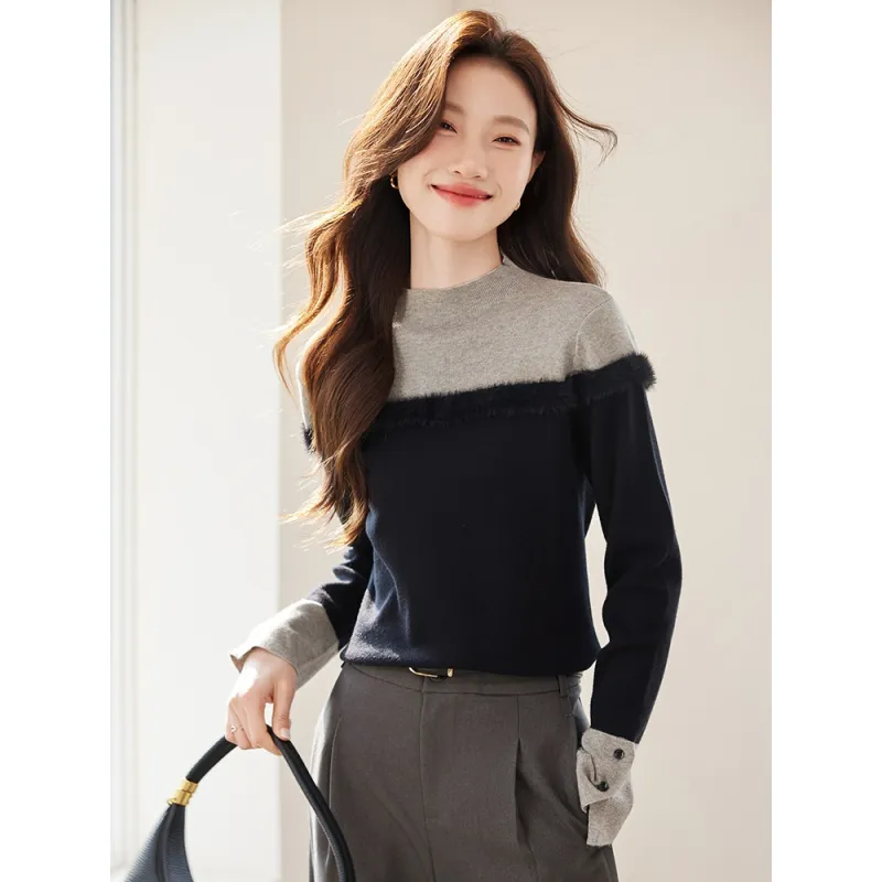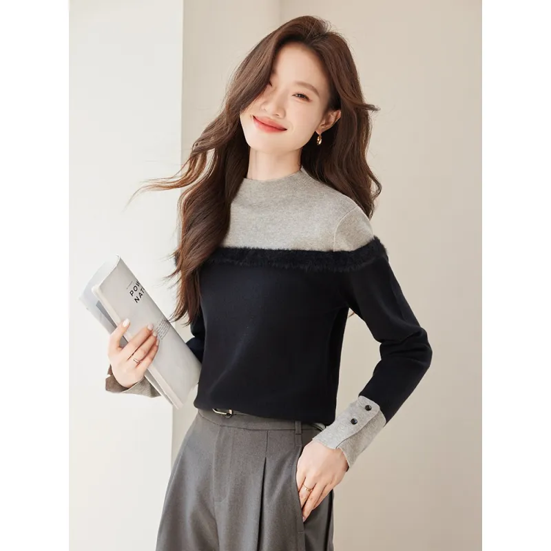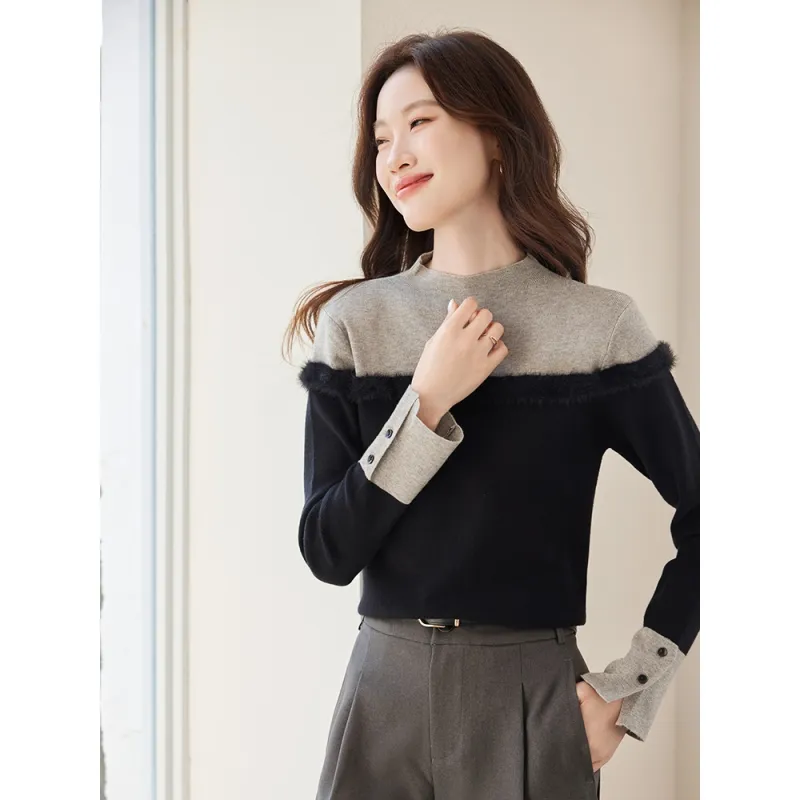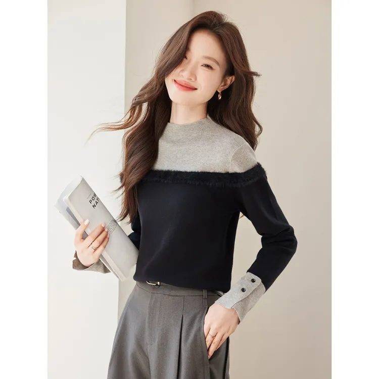PZHK Черный и Серый Трикотажная Ткань Женские Трикотажные