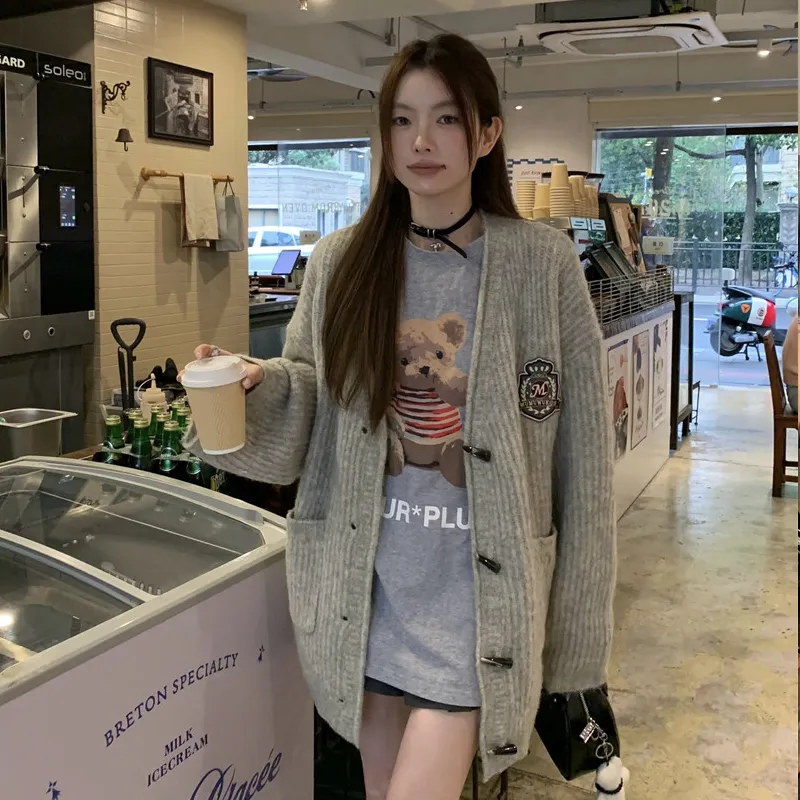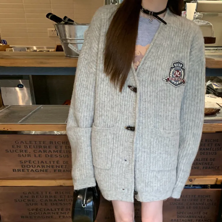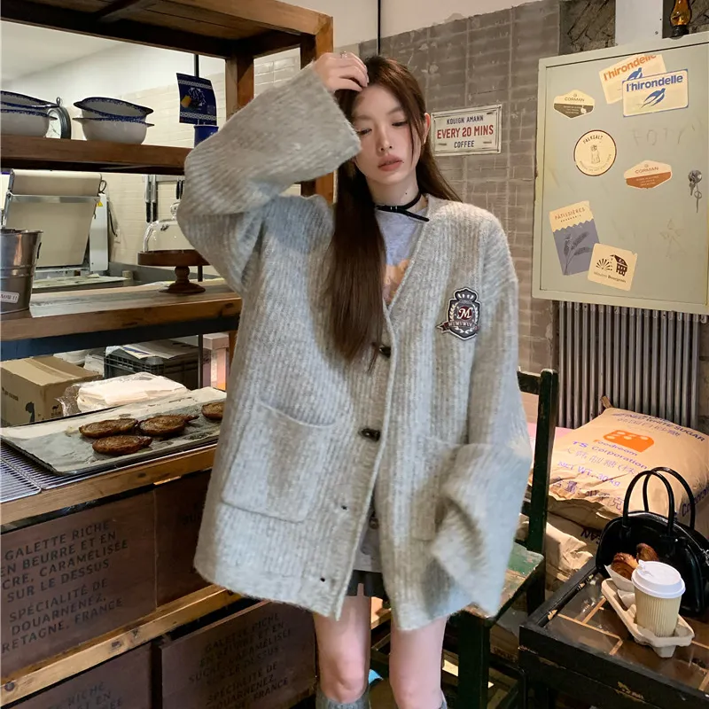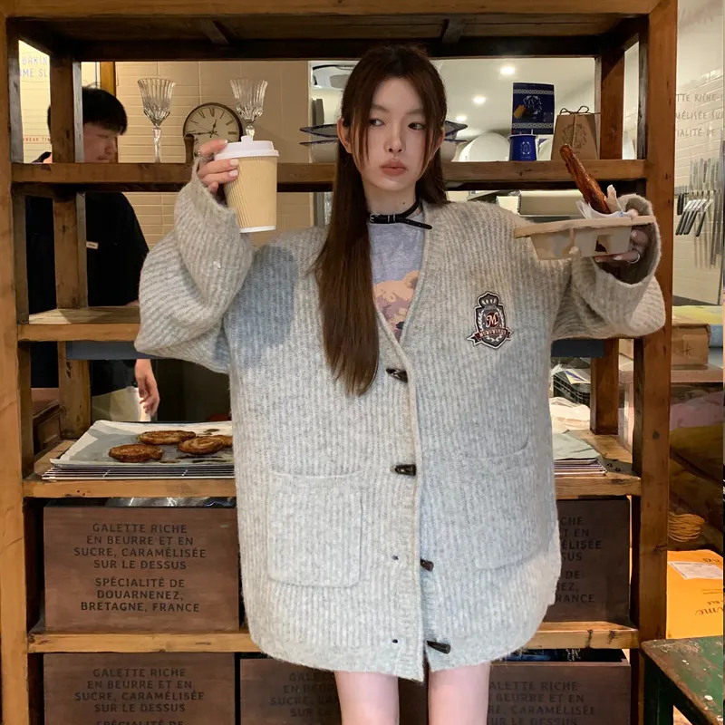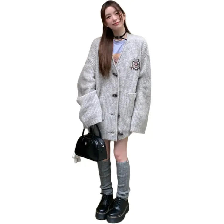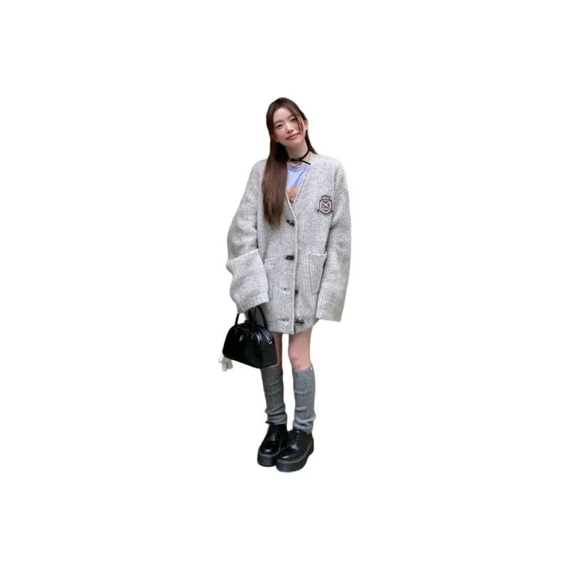 PZHK Серый Трикотаж Ткань Пальто Женские Трикотаж