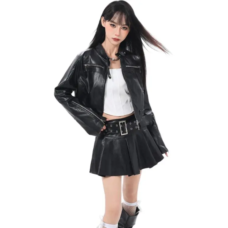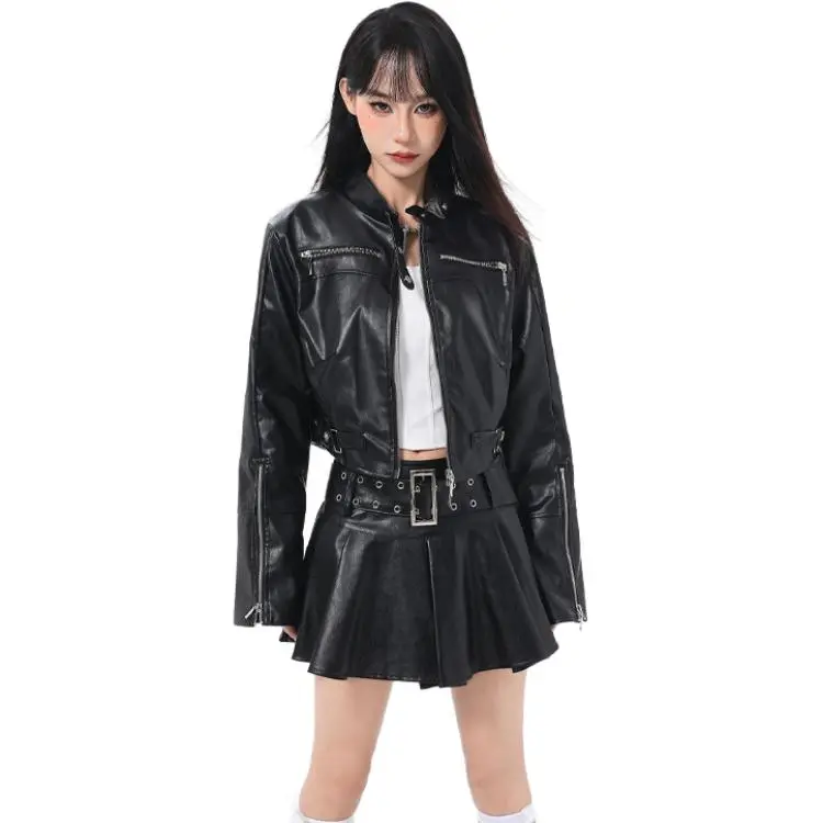 PZHK Черные Женские Кожаные Куртки