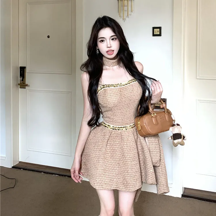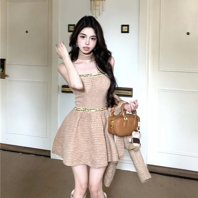 Кофе Пальто + Топ на бретелях + Юбка