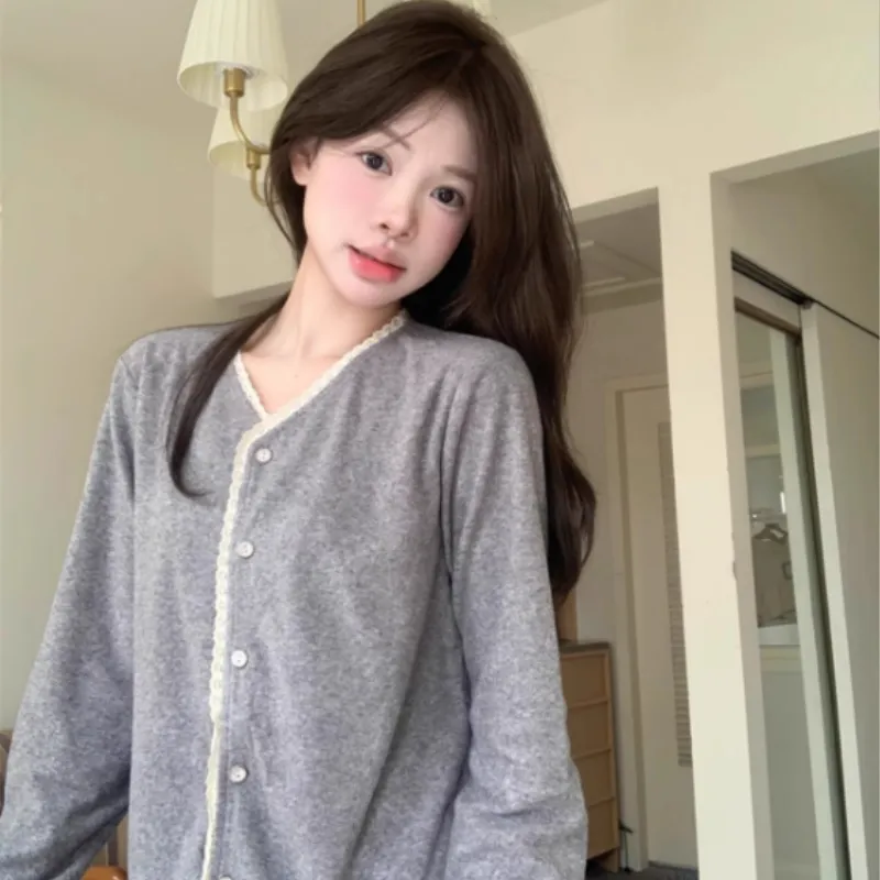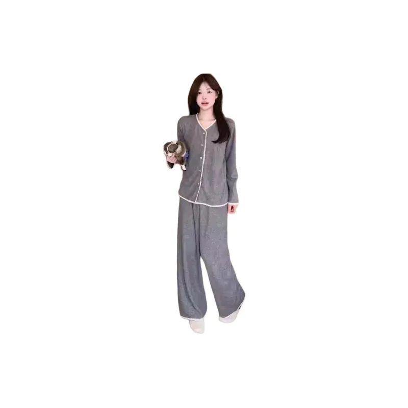 PZHK Кружевная отделка брушированный деним [серый комплект] женские пижамные комплекты