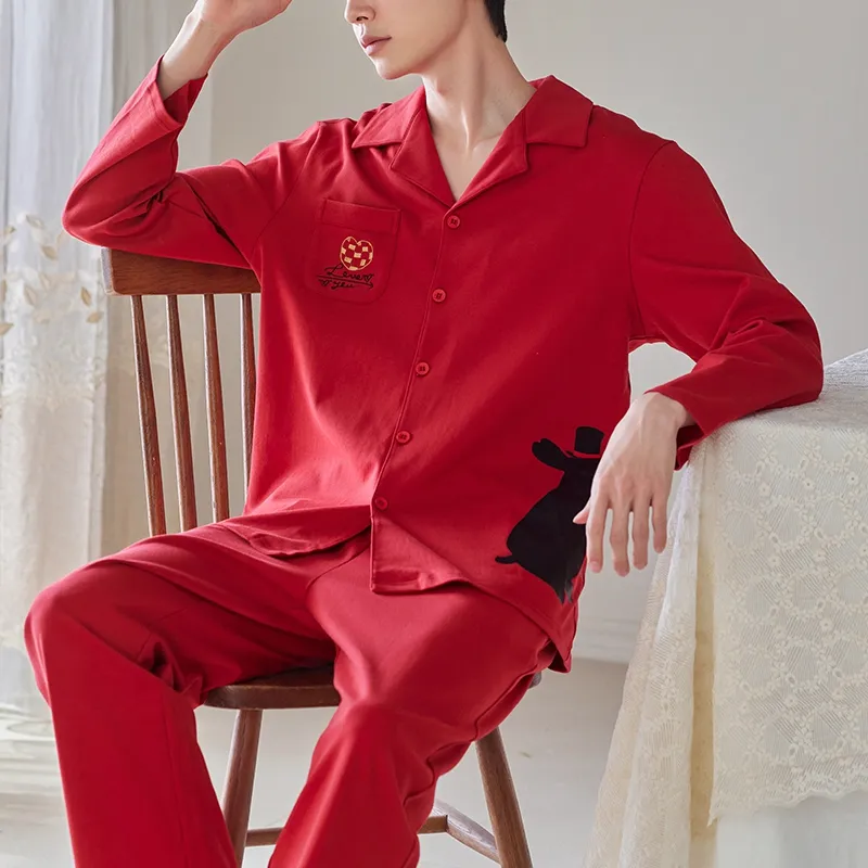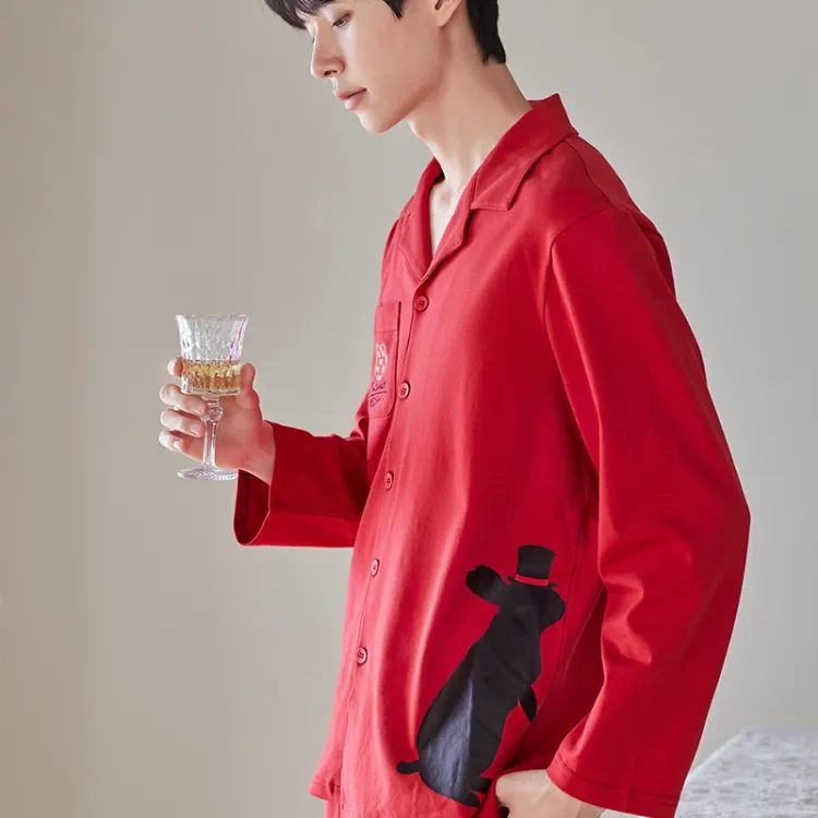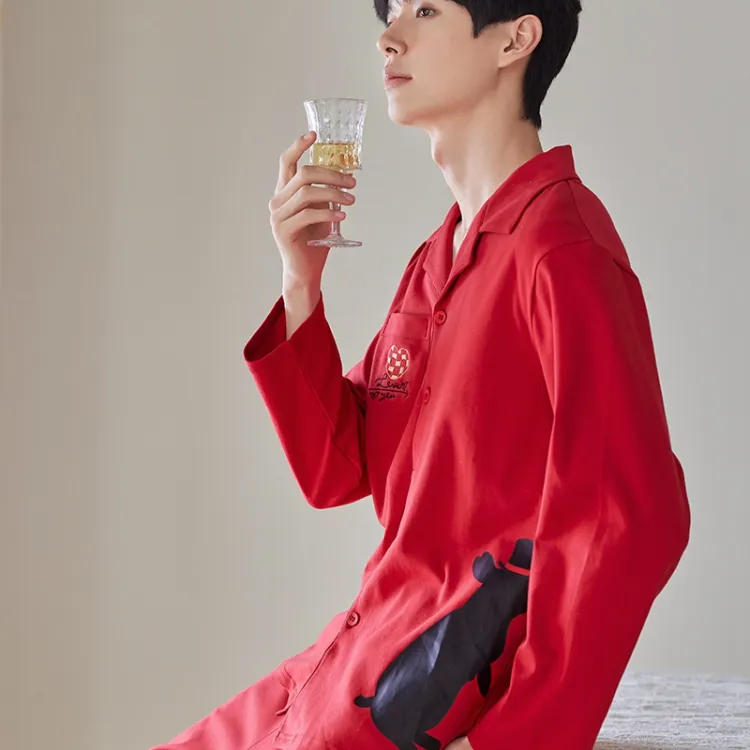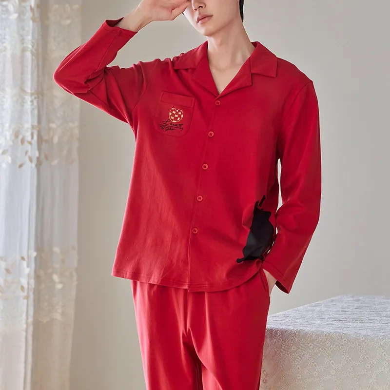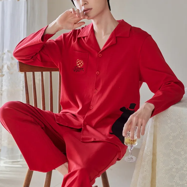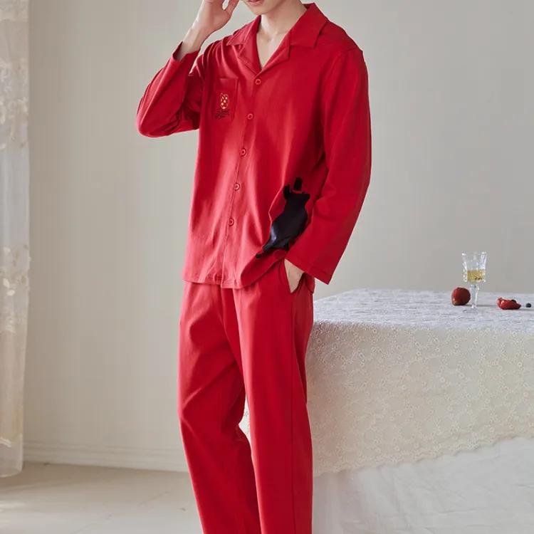 Q'NIANMA Китайский Красный Мужской Пижамный Комплект