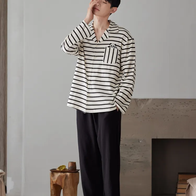 Q'NIANMA Черные полосы Мужской Пижамный комплект