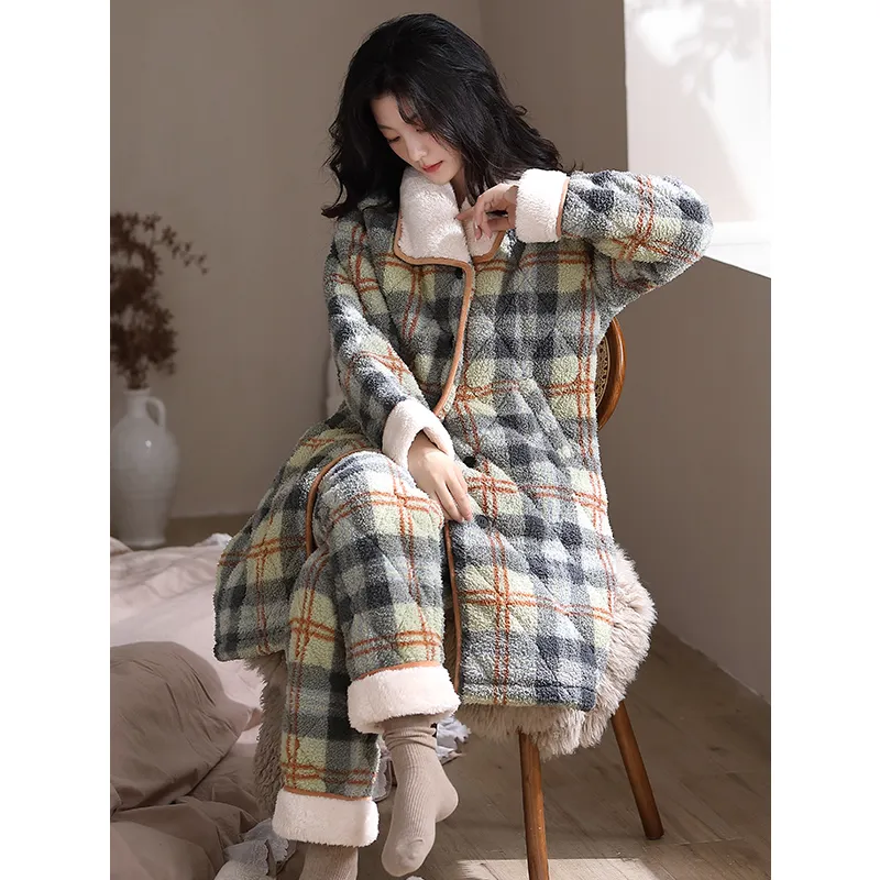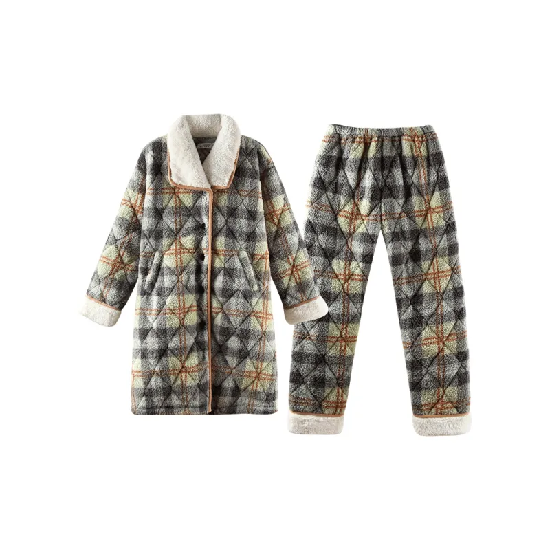Q'NIANMA Зеленый клетчатый узор женский пижамный комплект