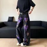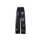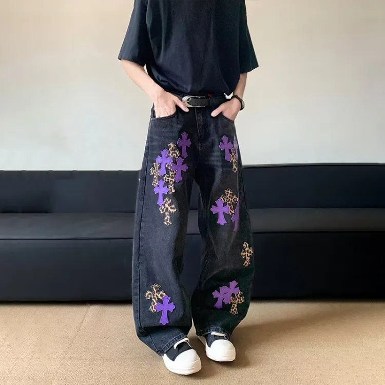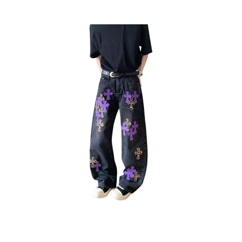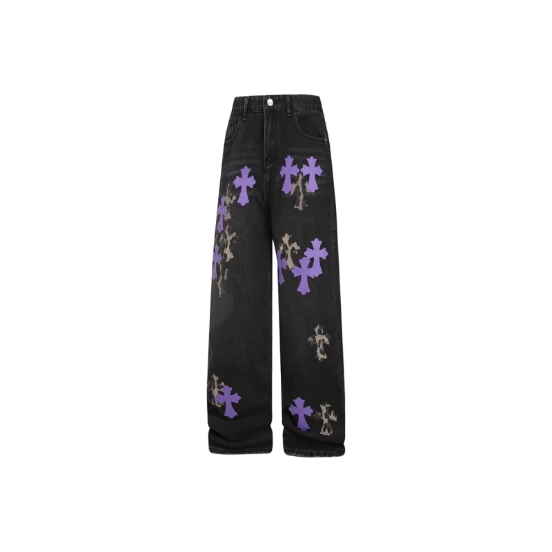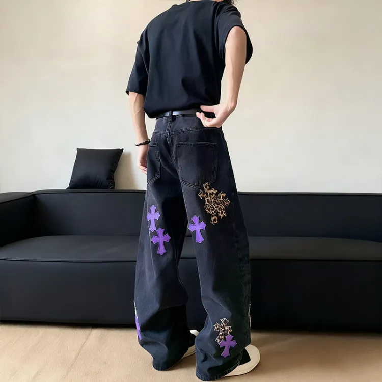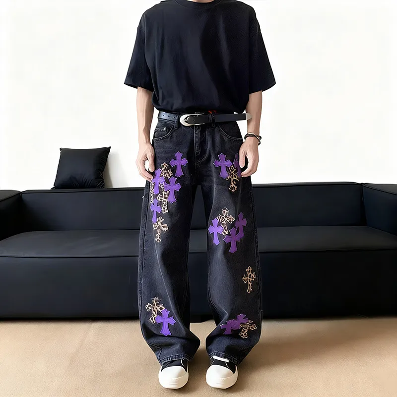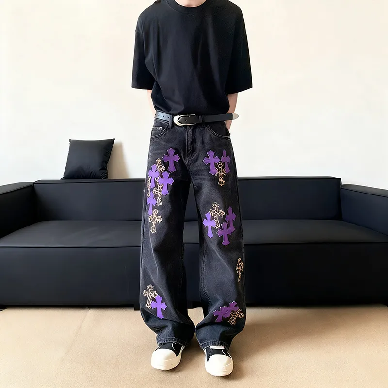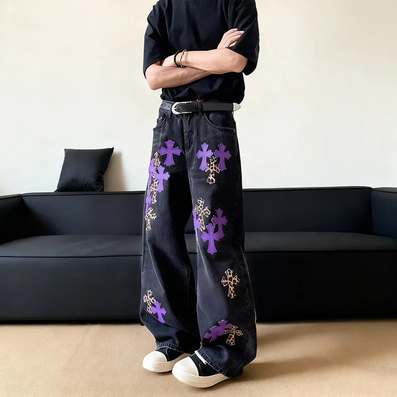 QEWBG Черный [Litchi Grain] Кожаная этикетка Унисекс Джинсы