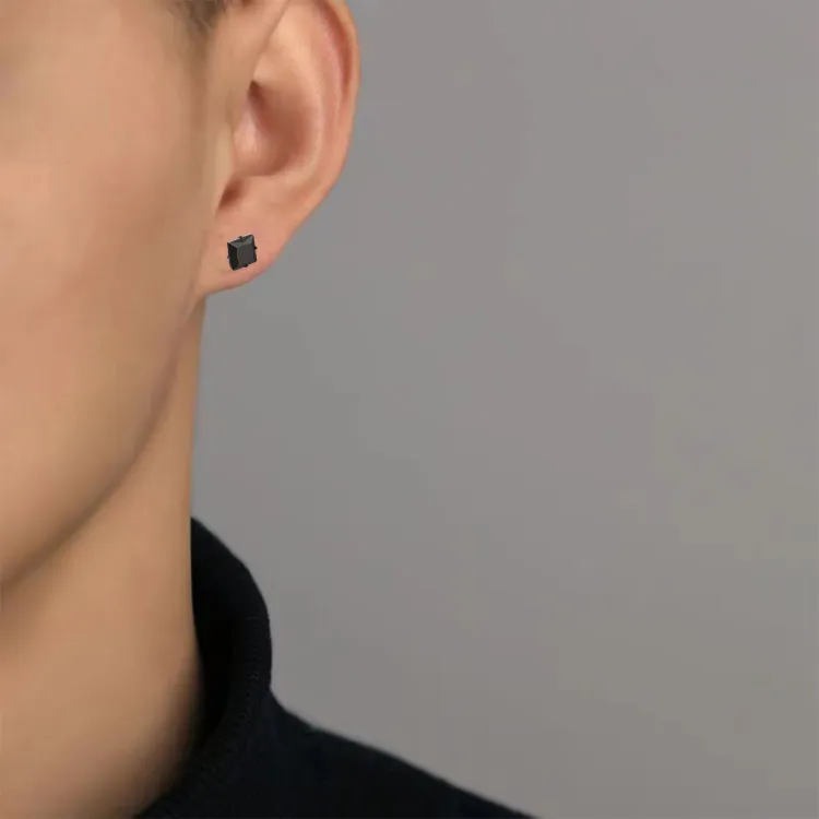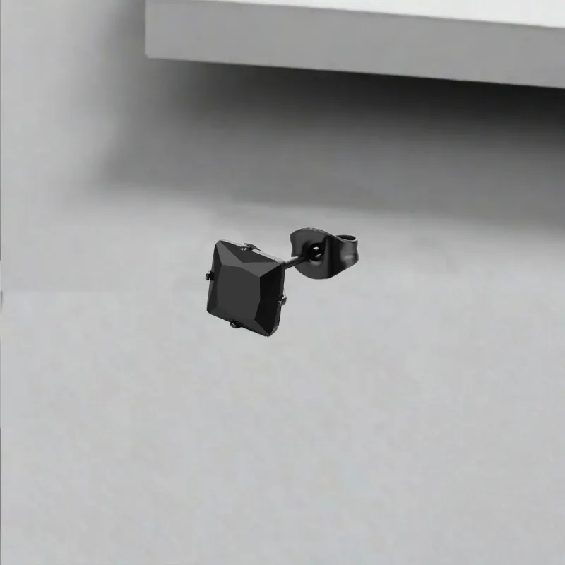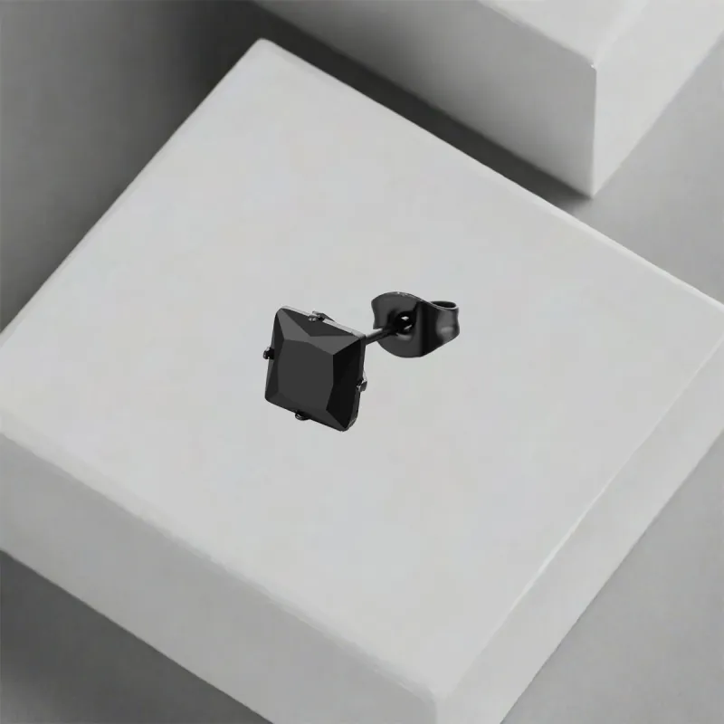 Стиль:Квадратные черные серьги с цирконием (одиночная)