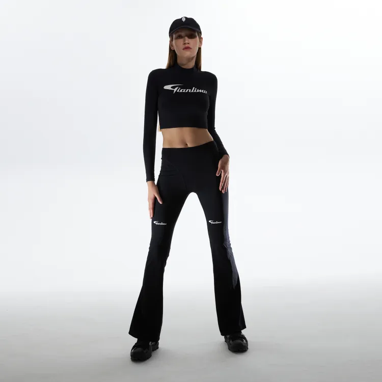 QIANLIMU Черные Женские Вязаные Спортивные Брюки