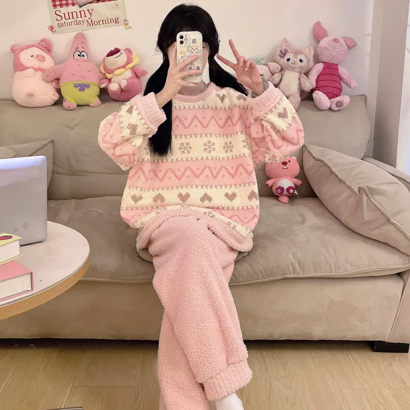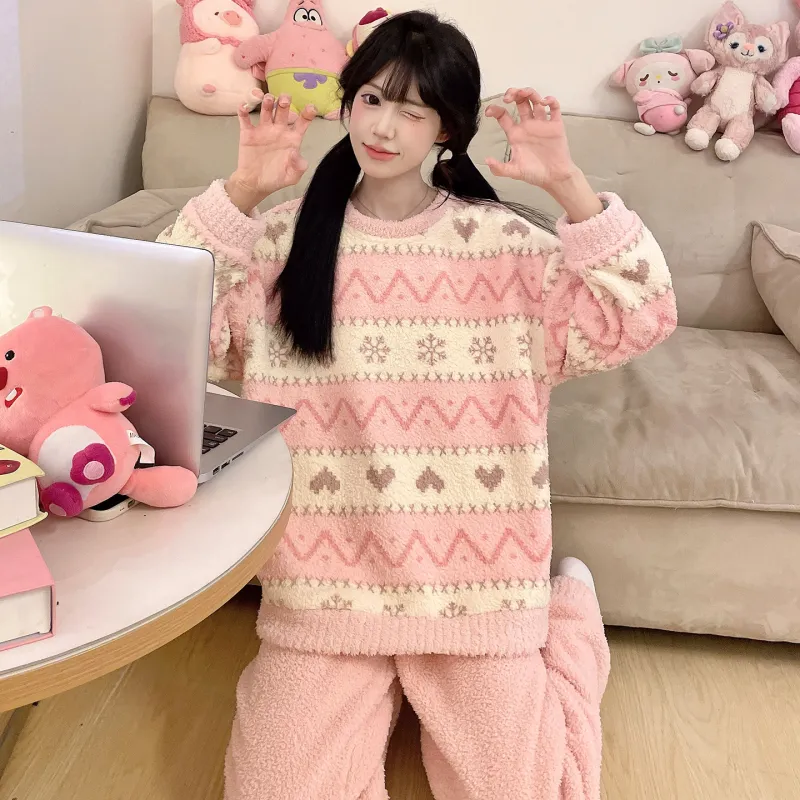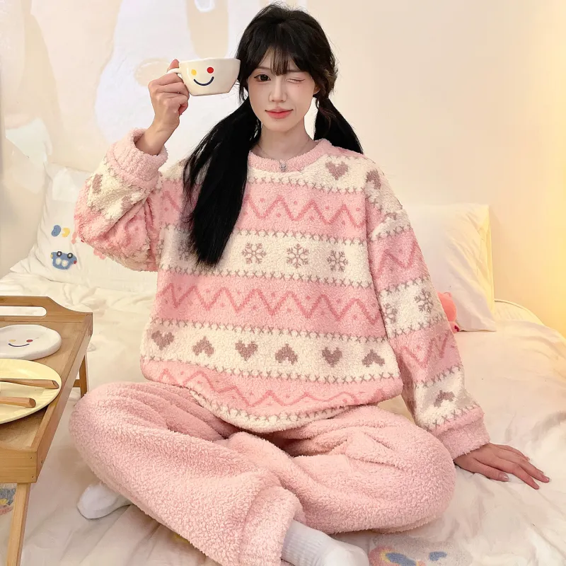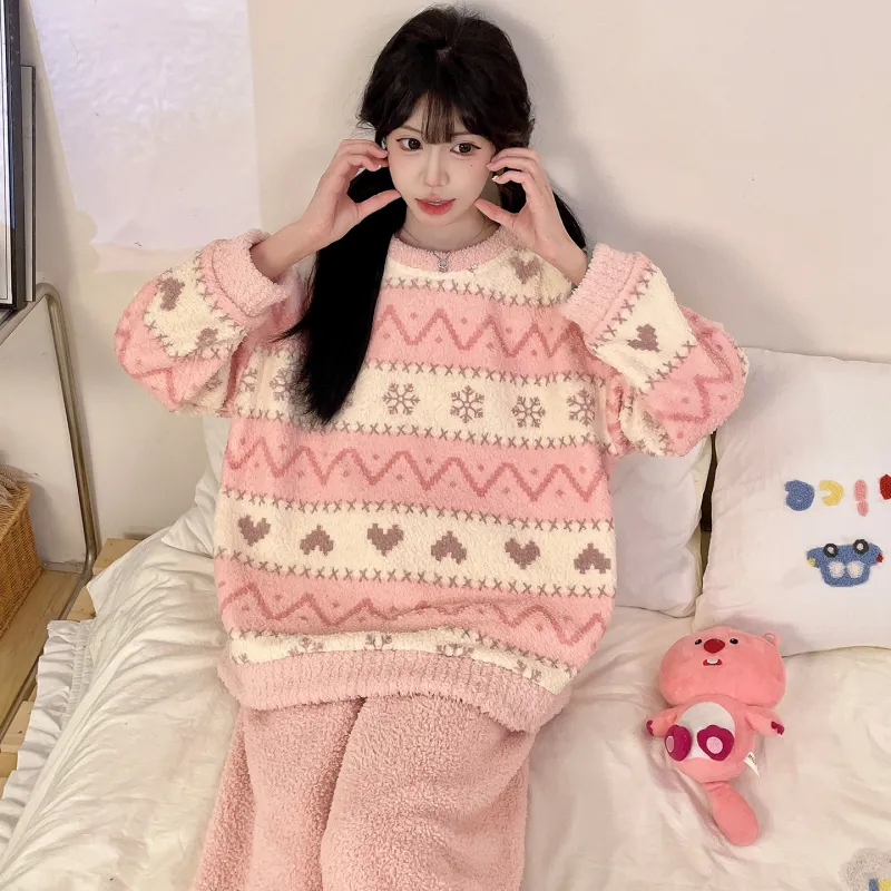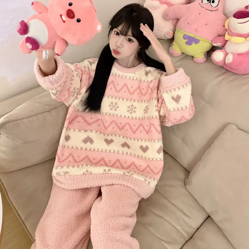 QIANSHENG Снежинка Сердце Женские Пижамные комплекты