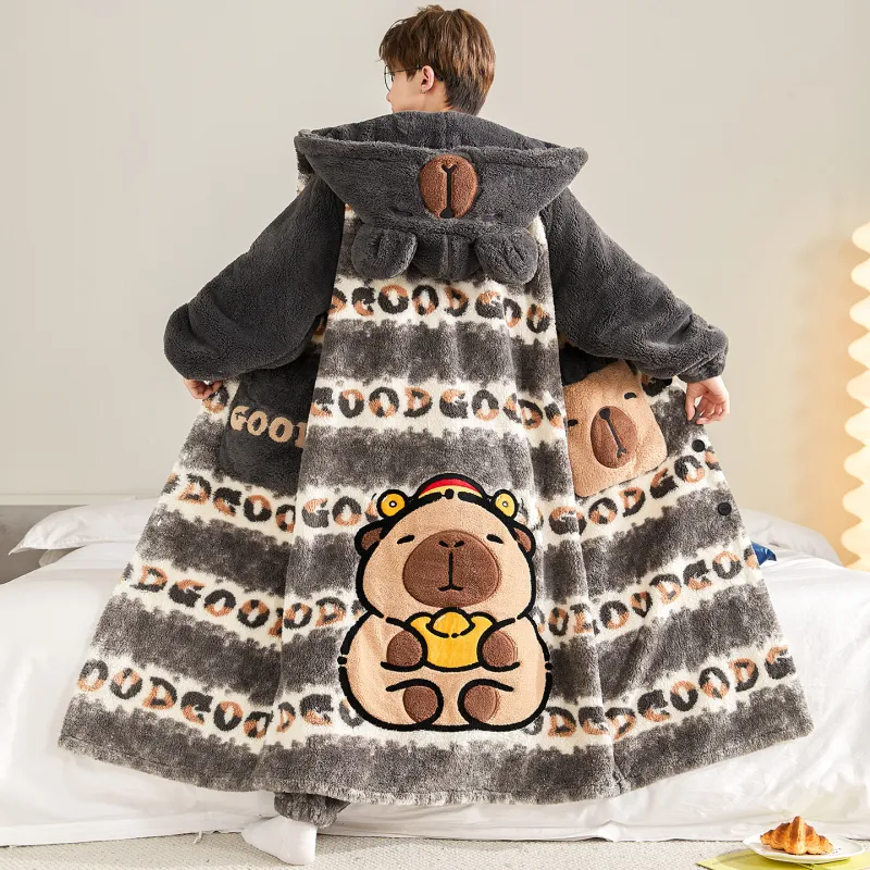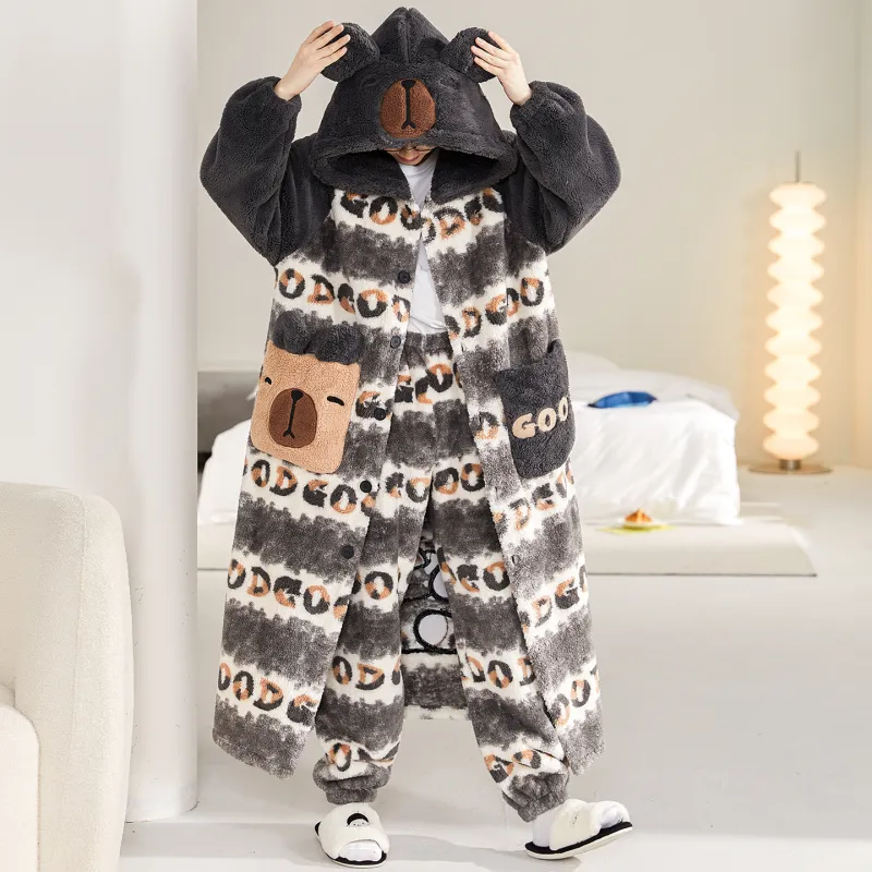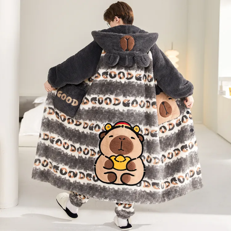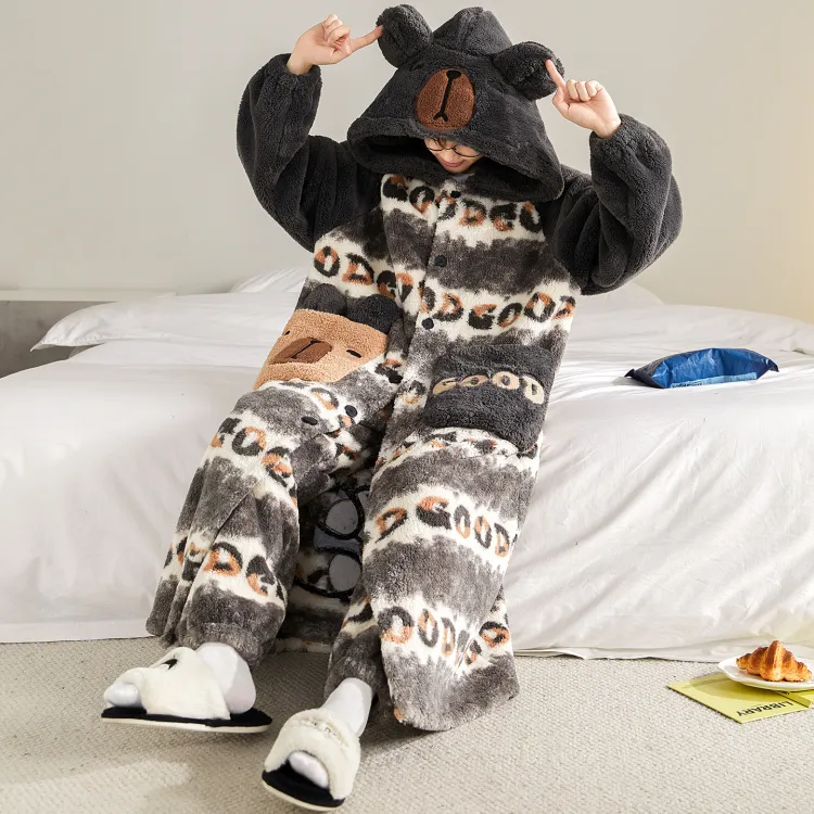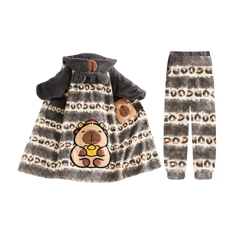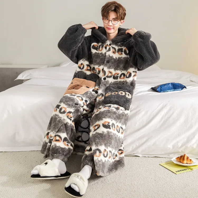 Qiao Ni Tong Пижамный комплект Осенний и Зимний Стиль Позиционирование Мужской Двухкомпонентный комплект