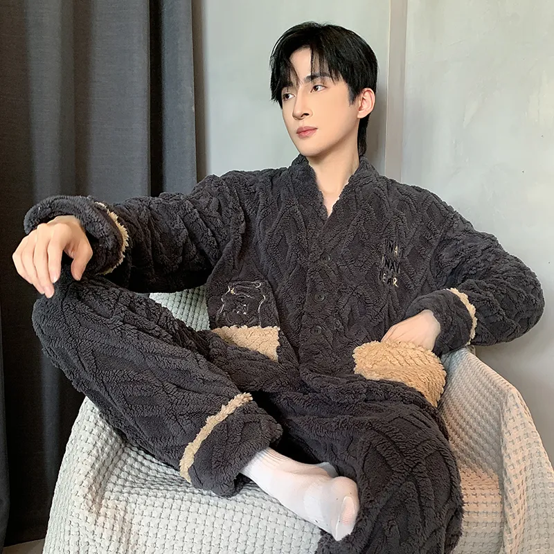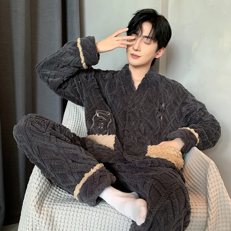 Qiao Ni Tong Пижамный комплект Мужской Темно-серый