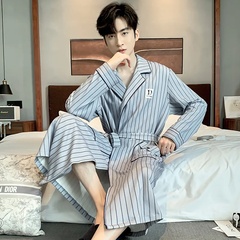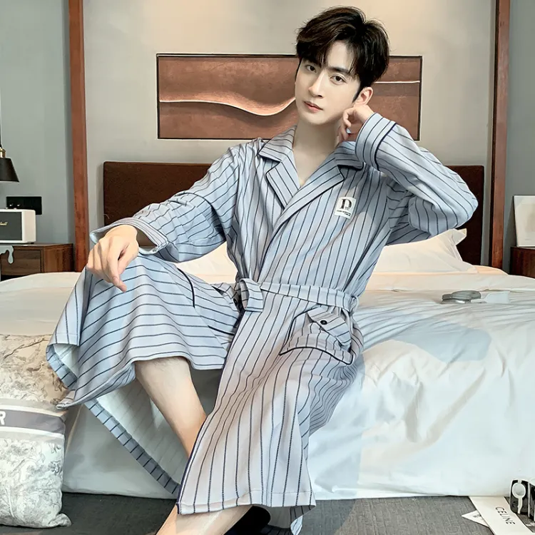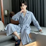Qiao Ni Tong Мужской халат для сна синий