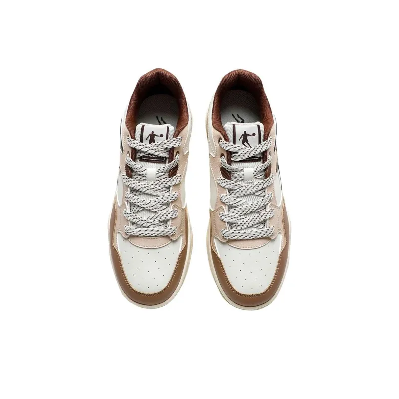 QIAODAN Slip-resistant Abrasion-resistant Low-top Skateboard Shoes Men's Beige Brown QIAODAN Противоскользящие Износостойкие Низкие Кеды для Скейтбординга Мужские Бежево-Коричневые
