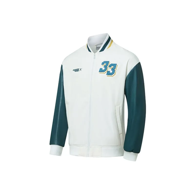 QIAODAN Бейсбольная куртка Мужская Белый Темно-синий