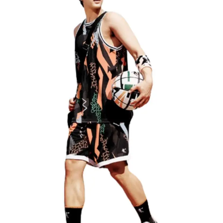 QIAODAN Баскетбольная Джерси Мужская Черная Небесно-синий Закат С принтом