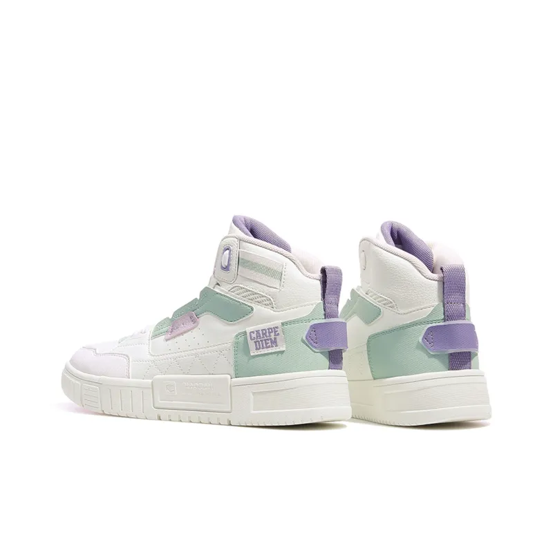 QIAODAN Покрытие Slip-Resistant Balance Lightweight High Top Скейтборд Кроссовки Женские Айвори Нефрит Зеленый