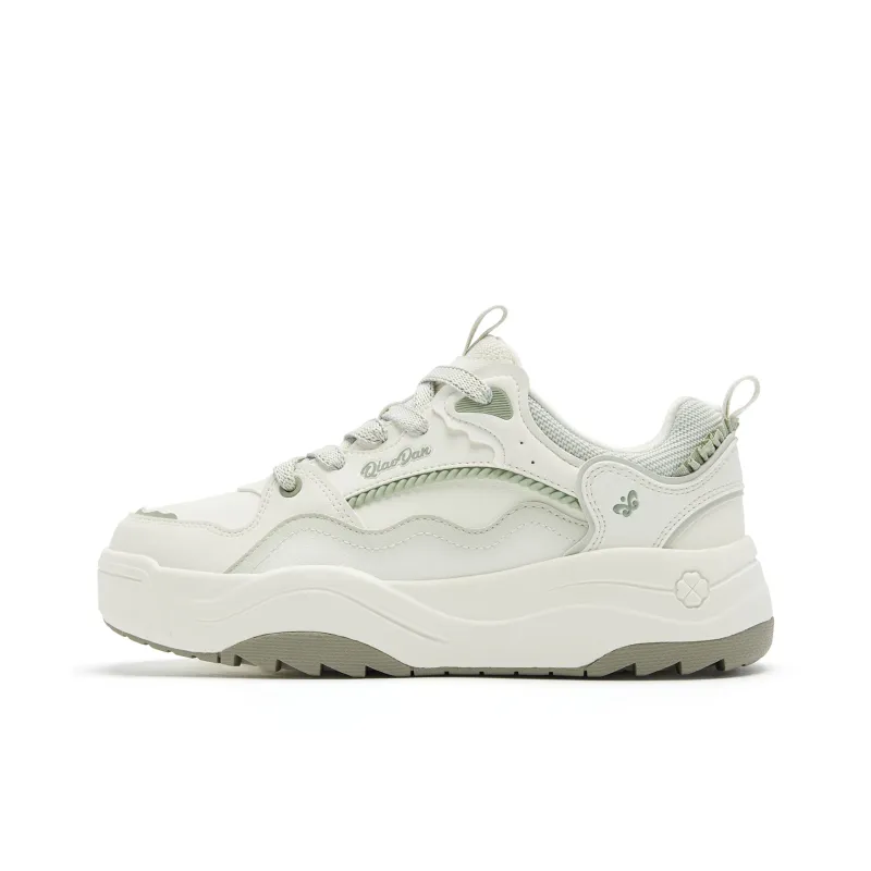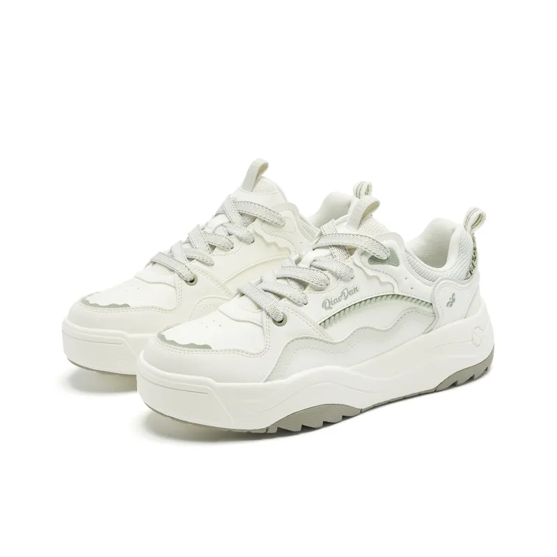 QIAODAN Амортизация Легкий Противоскользящий Низкий Топ Скейтборд Кроссовки Женские Айвори Белый Серый Бобовый Зеленый