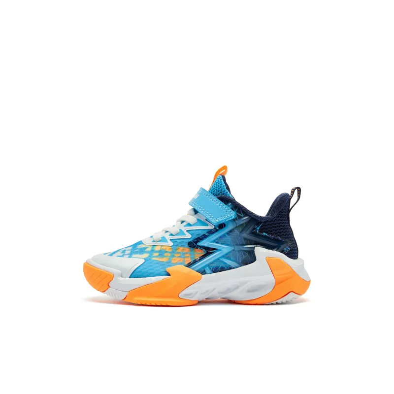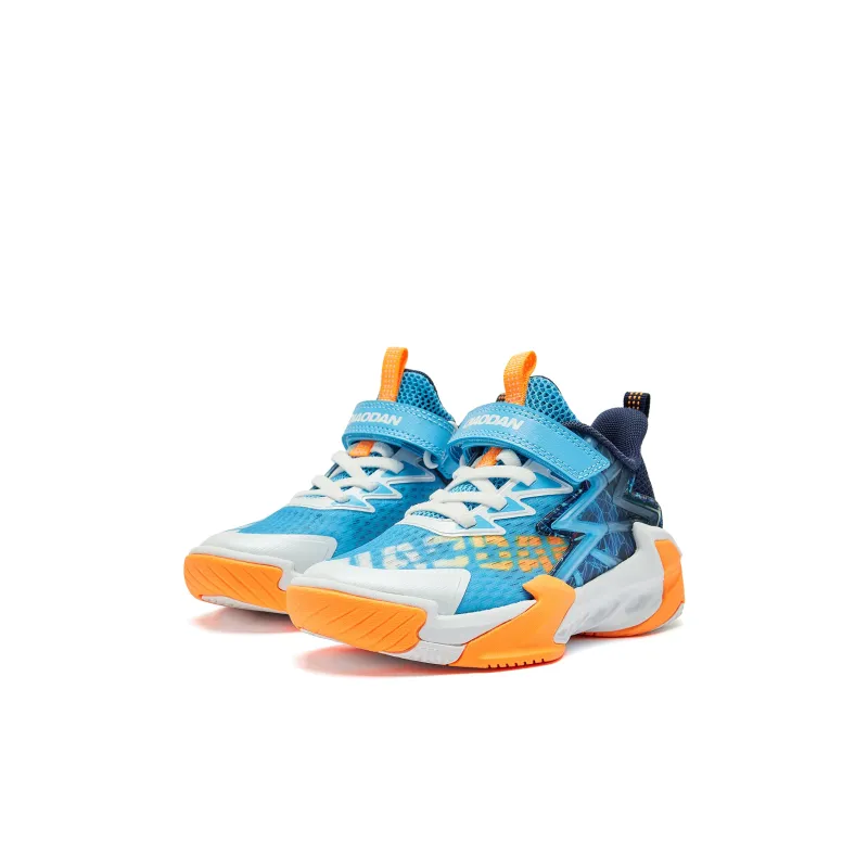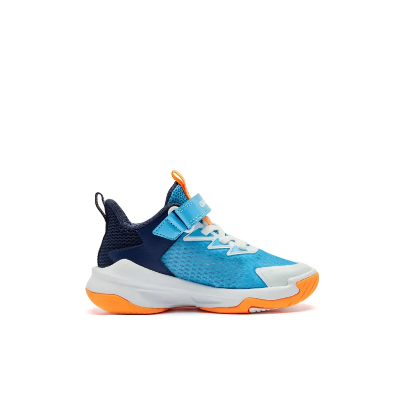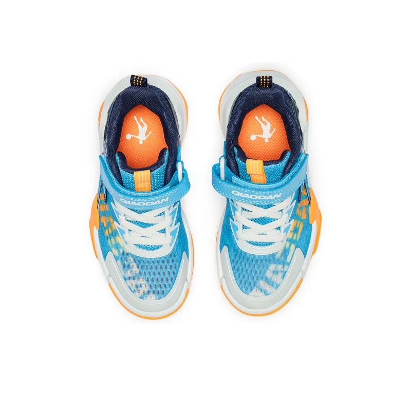 QIAODAN Амортизация Износостойкий Низкий Топ Детские Баскетбольные Кроссовки Синие Оранжевые Для Детей Возрастом 3-7 Лет