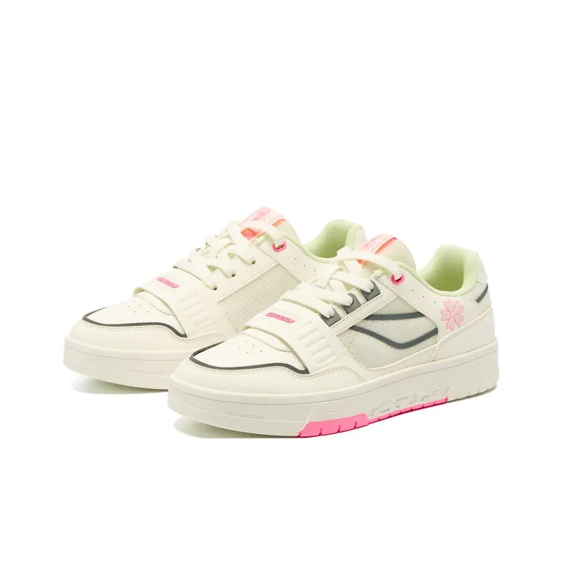 QIAODAN Dry Slip-Resistant Abrasion-Resistant Low Top Скейтборд Кроссовки Женские Айвори Ярко-Розовый