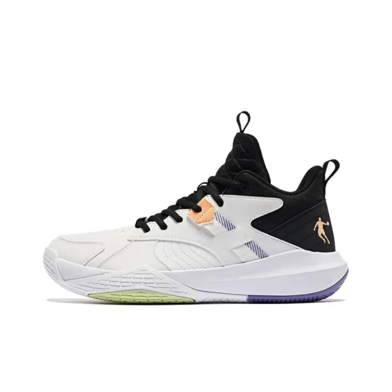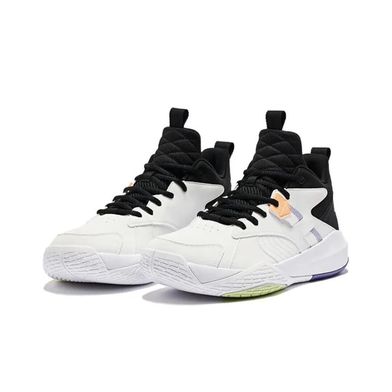 QIAODAN Frenzied BATTLE противоскользящие устойчивые к истиранию MID баскетбольные кроссовки Мужские Белый Фиолетовый