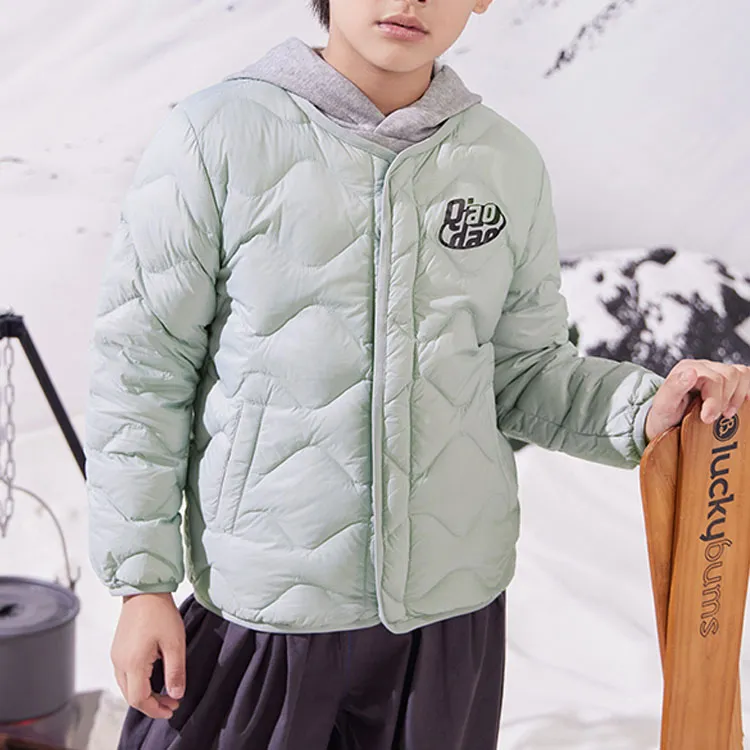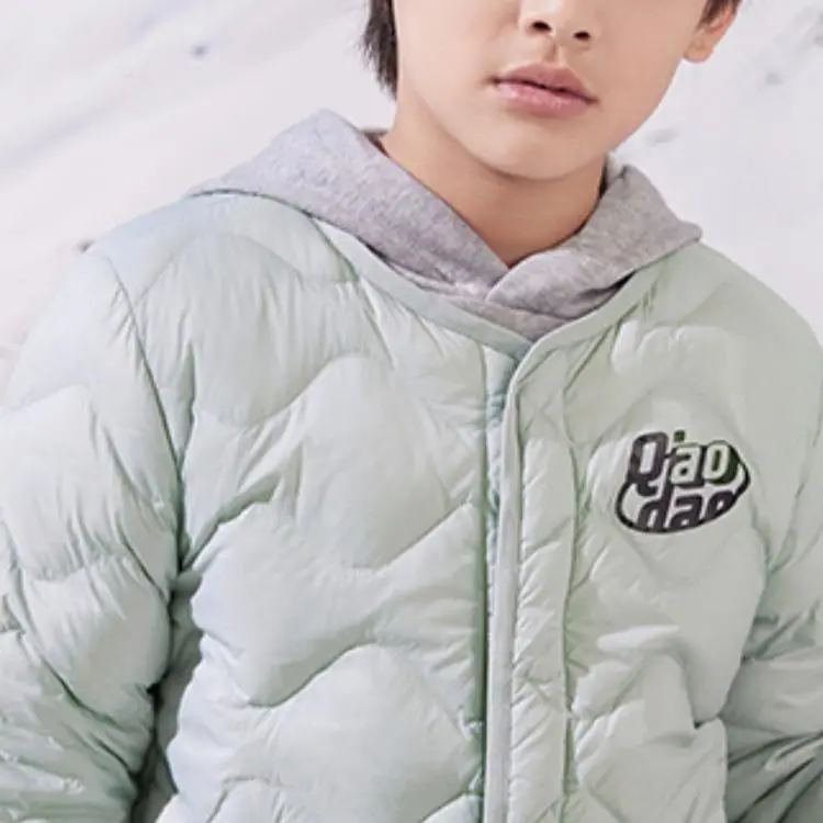 QIAODAN Буква Однотонный Круглый вырез Облегающий Легкий Стандартное издание Белый утиный пух Куртка Детский Pure Quality Серый