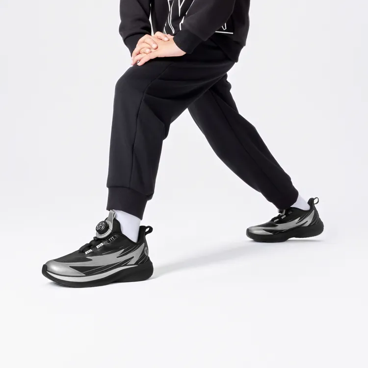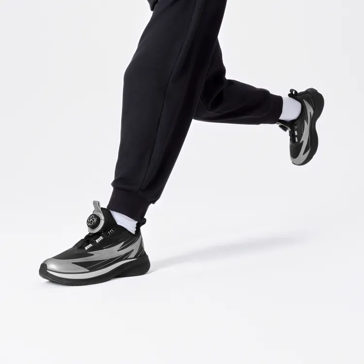 QIAODAN Light Speed 2,0 Противоскользящий Отскок Легкий Амортизация Низкий Топ Детские Беговые Кроссовки Черный Жидкое Серебро