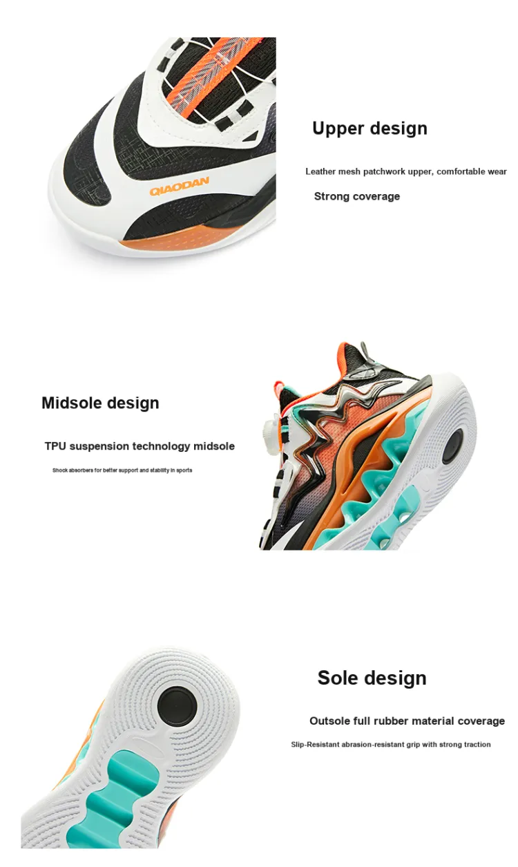QIAODAN Прыгающий Дракон Амортизация Износостойкий MID Топ Детские Баскетбольные кроссовки Белый Блестящий Оранжевый Подростки