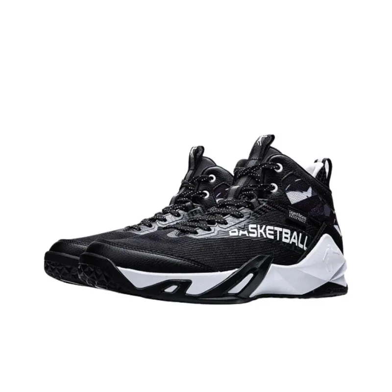 QIAODAN Амортизаторы Shock Slip-resistant Abrasion-resistant MID Топ Баскетбольные кроссовки Мужской Черный Jordan Белый