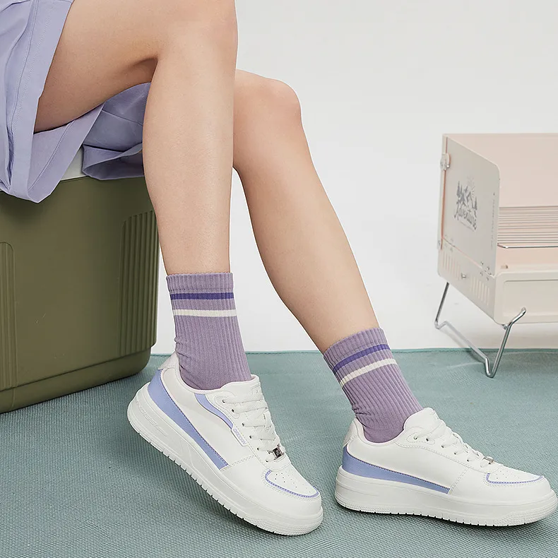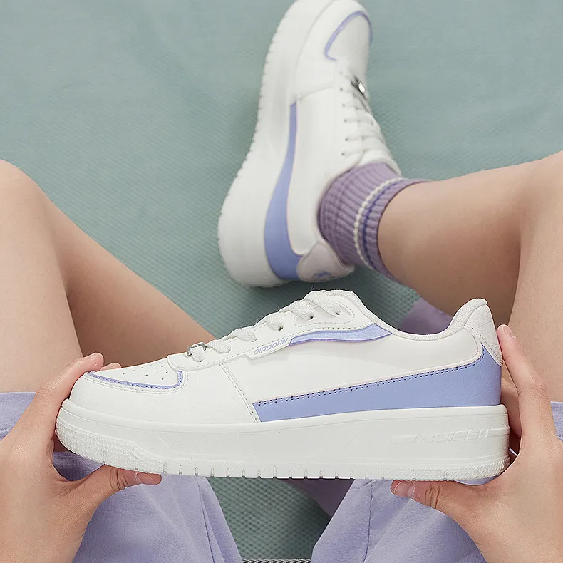 QIAODAN Slip-resistant Abrasion-resistant Low-top Скейтборд Кроссовки Женские Белый Фиолетовый