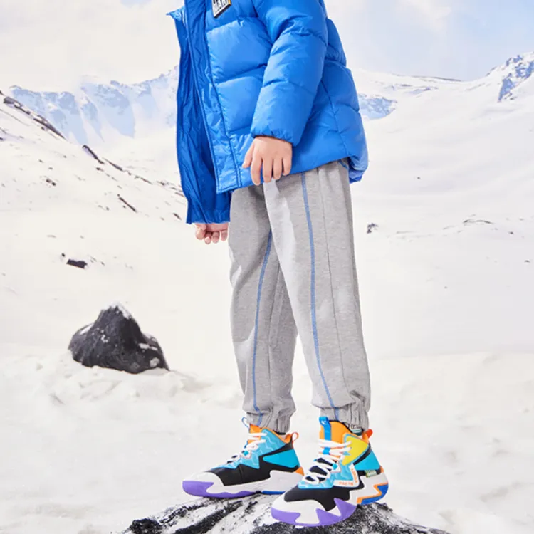 QIAODAN Slip-resistant Abrasion-resistant MID Топ Детские Баскетбольные Кроссовки Черный Оранжевый