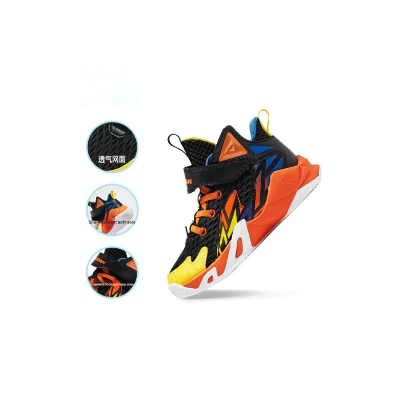 QIAODAN Slip-resistant Abrasion-resistant MID Топ Детские баскетбольные кроссовки Оранжевый Черный Для детей 3-7 лет