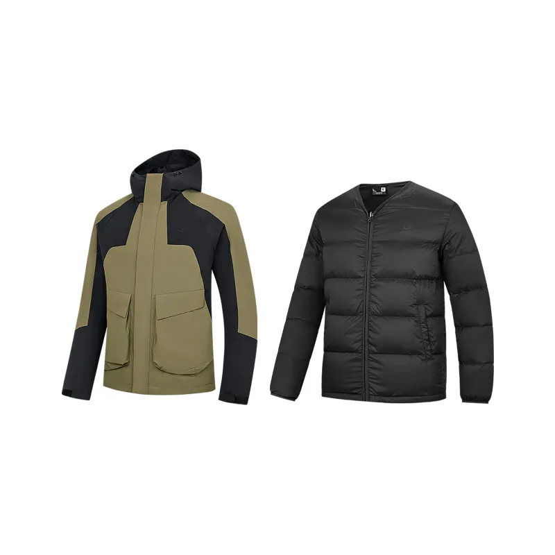 QIAODAN Теплоизоляционный ветровка Мужской Черный Монитор Зеленый