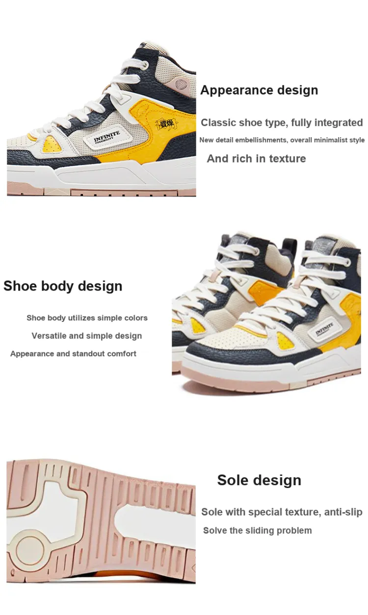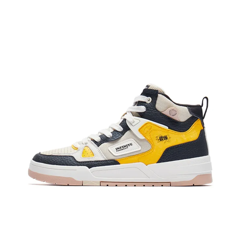 QIAODAN Wind Direction Противоскользящие амортизаторы Высокие Кроссовки для скейтбординга Мужские Серый Желтый